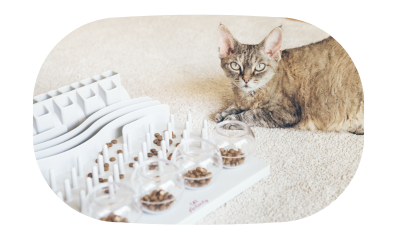 Idéal pour les plus gourmands, ce type de jeu permet également de réguler la prise alimentaire tout en dépensant l'énergie cognitive de votre félin.
